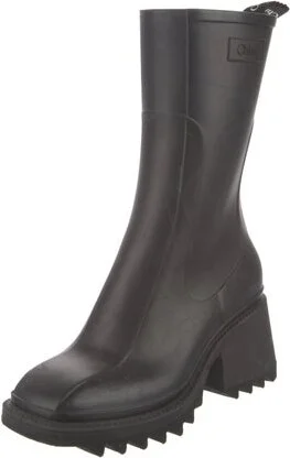 Chloé Rubber Ankle Rain Boots Black Square-Toes Platform Exposed Zip Closure at Sides Fit: This style typically runs a half size small. Read more