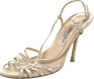 Jimmy Choo Leather Slingback Sandals Gold & Metallic Buckle Closure at Ankles Fit: This style typically runs a full size small. Unfortunately, due to restrictions, this item may not be eligible for shipping in all areas.