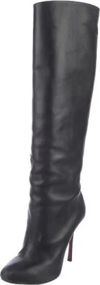 Christian Louboutin Leather Knee-High Boots Black Semi-Pointed Toes Designer Fit: This style typically runs a full size small. Unfortunately, due to restrictions, this item may not be eligible for shipping in all areas.