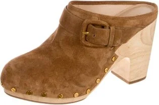 Veronica Beard Suede Mules Brown Semi-Pointed Toes with Studded Accents Platform Crossover Straps & Buckle Closure At Uppers Read more