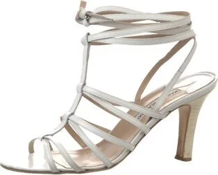 Manolo Blahnik Leather Sandals White Wrap-Around Straps & Tie Closures Fit: This style typically runs narrow and a half size small. Unfortunately, due to restrictions, this item may not be eligible fo Read more