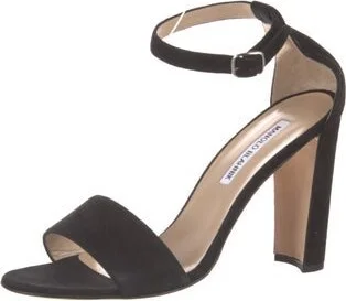 Manolo Blahnik Suede Sandals Black Wrap-Around Straps & Buckle Closure at Ankles Fit: This style typically runs narrow and a half size small.