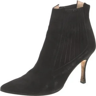 Manolo Blahnik Suede Ankle Boots Black Pointed-Toes Designer Fit: This style typically runs a full size small. Read more