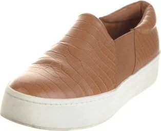 Vince Leather Slip-On Sneakers Brown Round-Toes Platform Unfortunately, due to restrictions, this item may not be eligible for shipping in all areas.