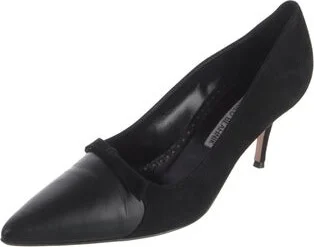 Manolo Blahnik Suede Pumps Black Semi-Pointed Toes with Bow Accents Fit: This style typically runs narrow and a half size small. Read more