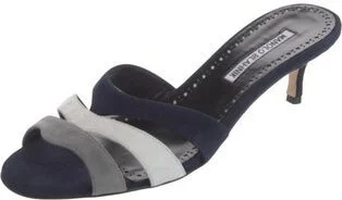 Manolo Blahnik Suede Slides Blue Crossover Straps Includes Box Fit: This style typically runs narrow and a half size small. Read more