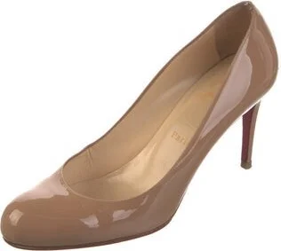 Christian Louboutin Patent Leather Pumps Neutrals Round-Toes Includes Dust Bag Designer Fit: This style typically runs a half size to a full size small.
