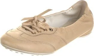Tod's Leather Ballet Flats Neutrals Round-Toes Lace-Up Closure at Uppers Unfortunately, due to restrictions, this item may not be eligible for shipping in all areas. Read more