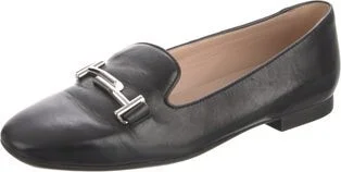 Tod's Leather Loafers Black Round-Toes Unfortunately, due to restrictions, this item may not be eligible for shipping in all areas. Read more