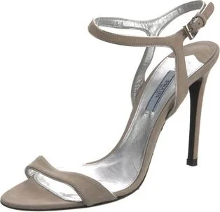 Prada Suede Sandals Neutrals Leather Trim Straps & Buckle Closure at Ankles Designer Fit: Sandals by Prada typically run a half size small.