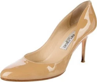 Jimmy Choo Patent Leather Pumps Neutrals Round-Toes Includes Dust Bag Fit: This style typically runs a half size small. Read more