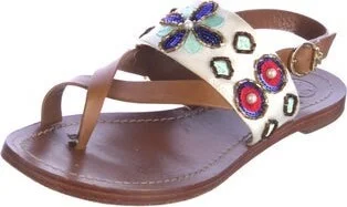 Tory Burch Leather Slingback Sandals Brown Animal Print Beaded & Embroidered Accents Multistrap & Buckle Closure at Ankles Includes Box Designer Fit: This designer typically runs true to size. Unfortunately, due to restrictions, this item may not be eligible for shipping in all areas.