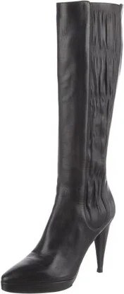 Prada Leather Knee-High Boots Black Semi-Pointed Toes Platform Fit: This style typically runs a half size small. Unfortunately, due to restrictions, this item may not be eligible for shipping in all a Read more