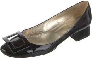 Roger Vivier Patent Leather Pumps Black Round-Toes Designer Fit: Pumps by Roger Vivier typically run a half size small.