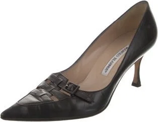 Manolo Blahnik Leather Pumps Black Pointed-Toes Fit: This style typically runs narrow and a half size small. Unfortunately, due to restrictions, this item may not be eligible for shipping in all areas Read more