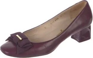 Salvatore Ferragamo Leather Pumps Purple Square-Toes with Bow Accents Fit: This style typically runs a half size small. Unfortunately, due to restrictions, this item may not be eligible for shipping i Read more