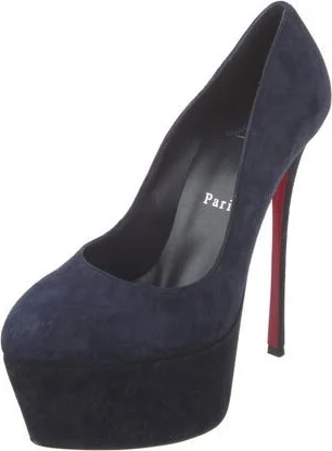 Christian Louboutin Suede Pumps Blue Leather Trim Semi-Pointed Toes Platform Designer Fit: This style typically runs a half size to a full size small. Read more