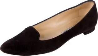 Manolo Blahnik Suede Ballet Flats Black Semi-Pointed Toes Includes Dust Bag Designer Fit: This style typically runs narrow and a half size small. Read more