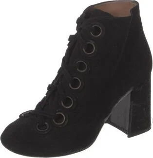 Laurence Dacade Suede Ankle Lace-Up Boots Black Square-Toes Lace-Up Closure at Uppers Read more