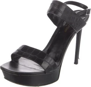 Saint Laurent Embossed Leather Slingback Sandals Black Platform Straps & Buckle Closure at Ankles Fit: Sandals by Saint Laurent typically run small, consider taking a half size up. Read more