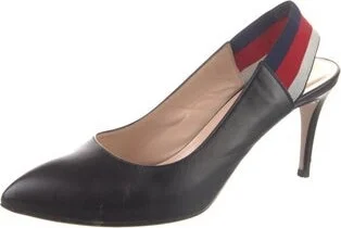 Gucci Leather Slingback Pumps Black Semi-Pointed Toes Elasticized Straps Includes Box & Dust Bag Unfortunately, due to restrictions, this item may not be eligible for shipping in all areas. Read more