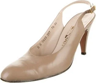 Salvatore Ferragamo Leather Slingback Pumps Brown Semi-Pointed Toes Buckle Closure at Ankles Includes Box Fit: This style typically runs a half size small. Unfortunately, due to restrictions, this ite Read more