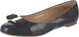 Salvatore Ferragamo Patent Leather Ballet Flats Blue Semi-Pointed Toes with Bow Accents Fit: This style typically runs a half size small.