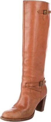Michael Kors Leather Knee-High Riding Boots Brown Round-Toes Wrap-Around Straps & Exposed Zip Closure at Sides Unfortunately, due to restrictions, this item may not be eligible for shipping in all are Read more
