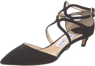 Jimmy Choo Suede Slingback Pumps Black Leather Trim Pointed-Toes Wrap-Around Straps & Buckle Closure at Ankles Fit: This style typically runs a half size small. Read more