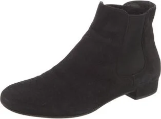 Prada Suede Ankle Chelsea Boots Black Semi-Pointed Toes Fit: This style typically runs a half size small. Read more