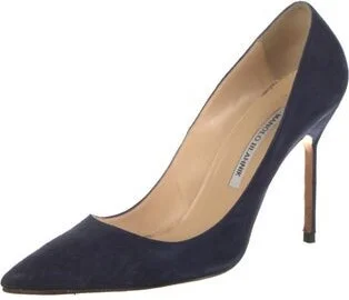 Manolo Blahnik Suede Pumps Blue Semi-Pointed Toes Fit: This style typically runs narrow and a half size small. Read more
