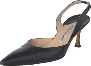 Manolo Blahnik Leather Slingback Pumps Blue Semi-Pointed Toes Straps Includes Dust Bag Fit: This style typically runs narrow and a half size small. Unfortunately, due to restrictions, this item may no Read more