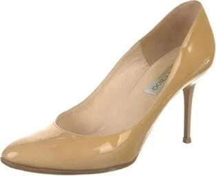 Jimmy Choo Patent Leather Pumps Neutrals Round-Toes Fit: This style typically runs a half size small.