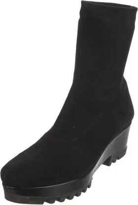 Robert Clergerie Suede Mid-Calf Sock Boots Black Semi-Pointed Toes Platform Designer Fit: Boots by Robert Clergerie typically run a half size small.