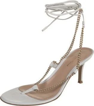 Gianvito Rossi Leather T-Strap Sandals White Chain-Link Accents Wrap-Around Straps & Tie Closures Includes Box & Dust Bag Unfortunately, due to restrictions, this item may not be eligible for shipping Read more
