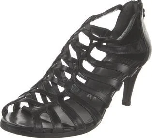 Stuart Weitzman Leather Pumps Black Peep-Toes Multistrap & Zip Closures at Shafts Designer Fit: This designer typically runs true to size. Unfortunately, due to restrictions, this item may not be elig Read more