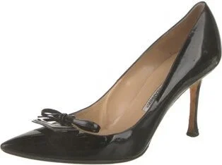Manolo Blahnik Patent Leather Pumps Black Semi-Pointed Toes Fit: This style typically runs narrow and a half size small. Read more