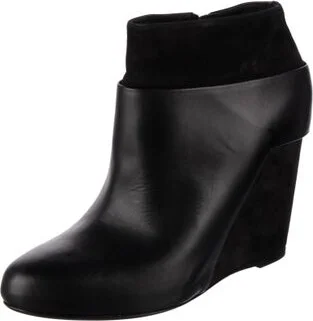 Vince Leather Ankle Boots Black Suede Trim Round-Toes Exposed Zip Closure at Sides Includes Box & Dust Bag Unfortunately, due to restrictions, this item may not be eligible for shipping in all areas. Read more