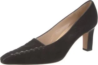 Manolo Blahnik Suede Pumps Black Semi-Pointed Toes Fit: This style typically runs narrow and a half size small. Read more