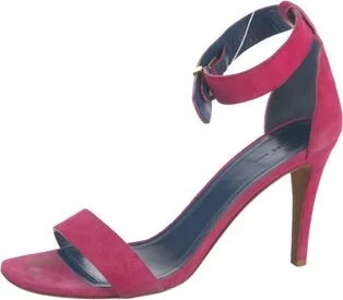 Celine Suede D'Orsay Pumps By Phoebe Philo Pink Round-Toes Wrap-Around Straps & Buckle Closure at Ankles Read more