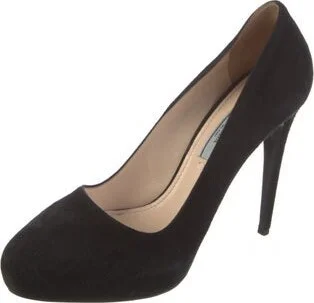 Prada Suede Pumps Black Semi-Pointed Toes Platform Designer Fit: Pumps by Prada typically run a half size small. Read more