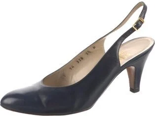 Salvatore Ferragamo Leather Slingback Pumps Black Round-Toes Straps & Buckle Closure at Ankles Includes Box Fit: This style typically runs a half size small. Unfortunately, due to restrictions, this item may not be eligible for shipping in all areas.