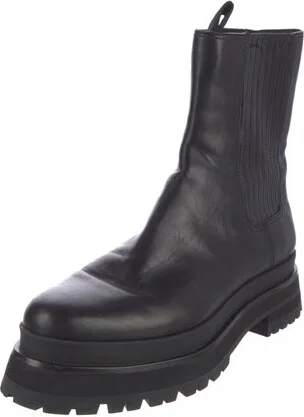 Loeffler Randall Leather Ankle Combat Boots Black Round-Toes Platform Unfortunately, due to restrictions, this item may not be eligible for shipping in all areas. Read more