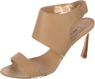 Manolo Blahnik Leather Slingback Sandals Neutrals Straps Fit: This style typically runs narrow and a half size small. Unfortunately, due to restrictions, this item may not be eligible for shipping in all areas.
