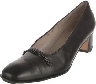 Salvatore Ferragamo Leather Pumps Black Square-Toes Fit: This style typically runs a half size small. Unfortunately, due to restrictions, this item may not be eligible for shipping in all areas.