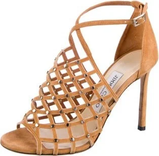 Jimmy Choo Suede Sandals Neutrals Studded Accents Multistrap & Buckle Closure at Ankles Fit: This style typically runs a full size small.