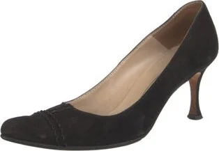 Manolo Blahnik Suede Pumps Black Semi-Pointed Toes Fit: This style typically runs narrow and a half size small. Read more