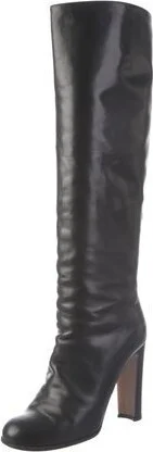 Prada Leather Knee-High Boots Black Round-Toes Platform Includes Box Fit: This style typically runs a half size small. Unfortunately, due to restrictions, this item may not be eligible for shipping in Read more