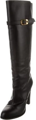Fendi Leather Knee-High Boots Black Semi-Pointed Toes Wrap-Around Straps & Concealed Zip Closure at Sides Designer Fit: Boots by Fendi typically run a half size small. Unfortunately, due to restrictio Read more