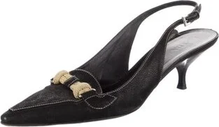 Prada Leather Slingback Pumps Black Pointed-Toes Straps & Buckle Closure at Ankles Designer Fit: Pumps by Prada typically run a half size small. Unfortunately, due to restrictions, this item may not b Read more